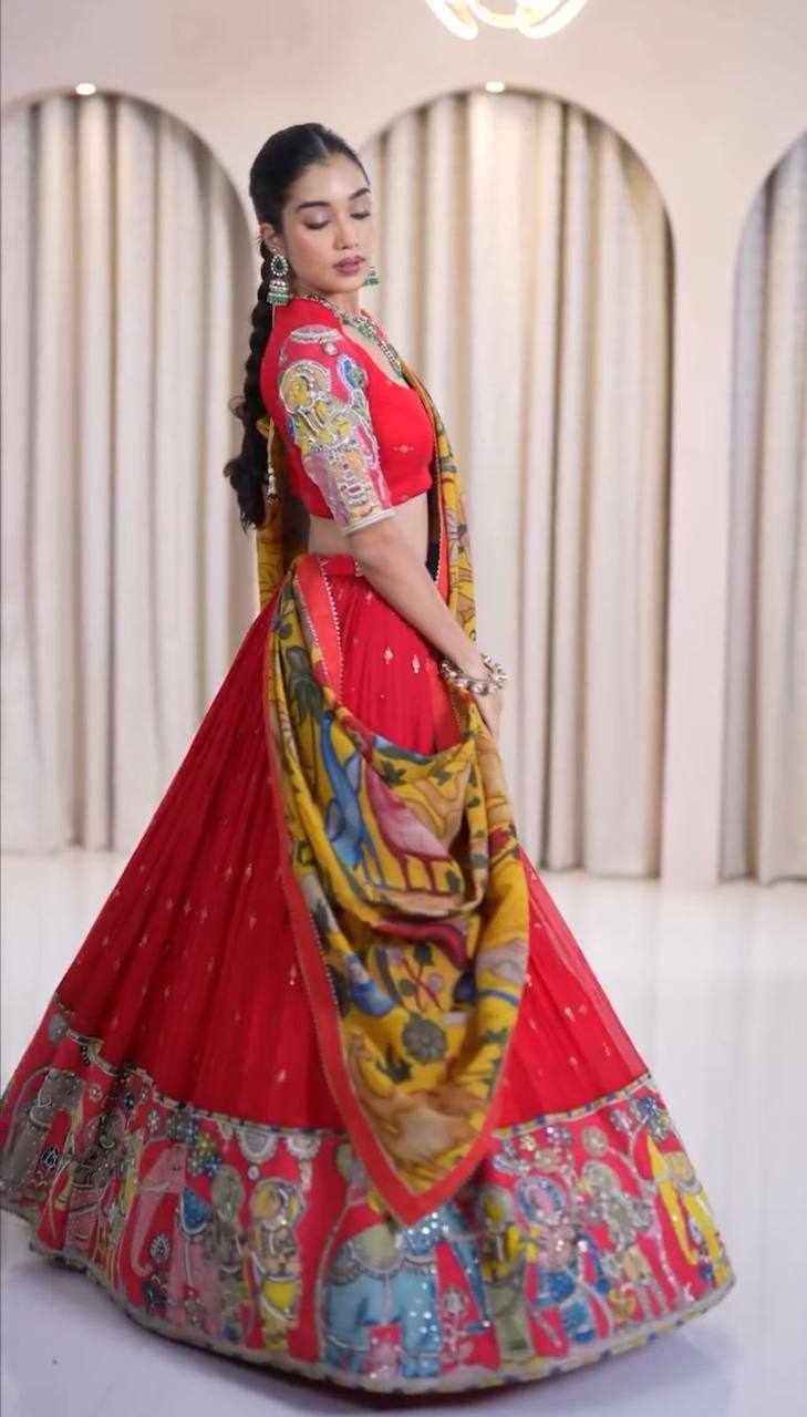 | Name : | PC 455 Red Kalamkari Print Lehenga |