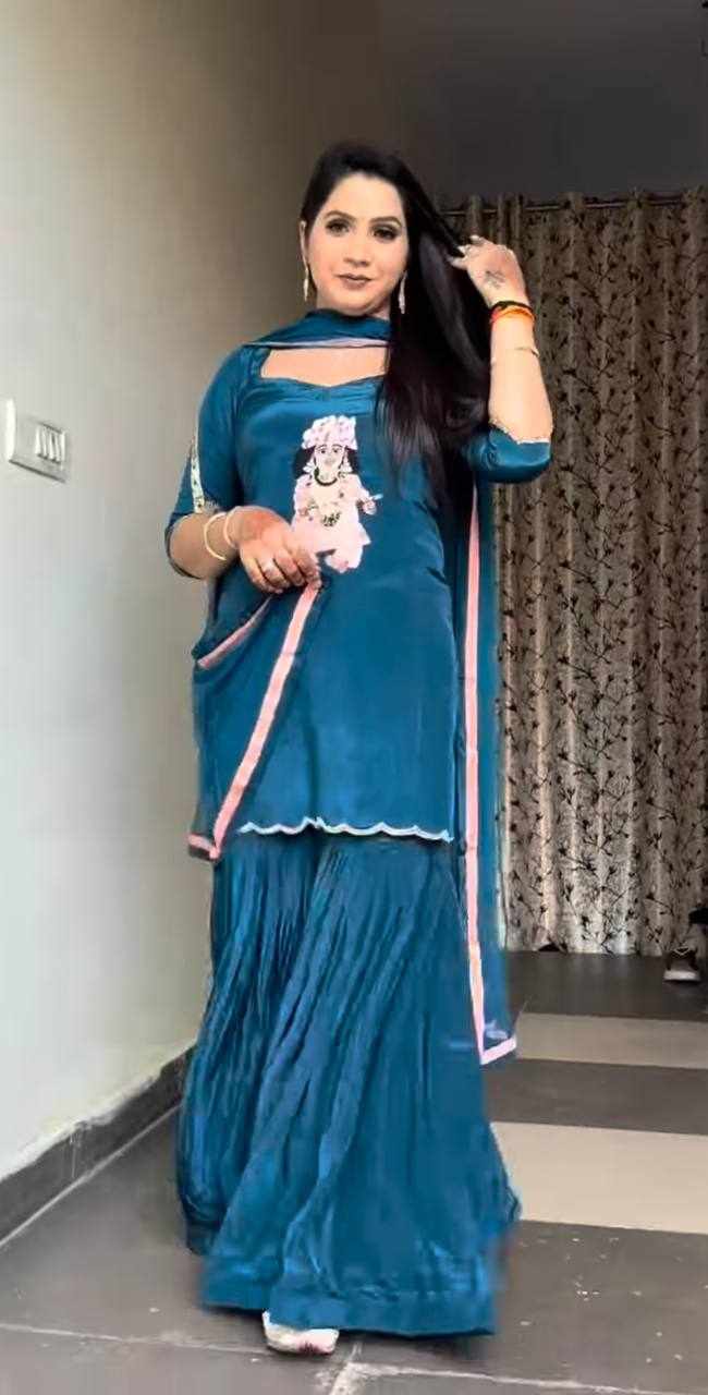 Top Fabric: Natural Crep with heavy embroidery work with fancy borders, less work sleeve with fancy latkan dori.