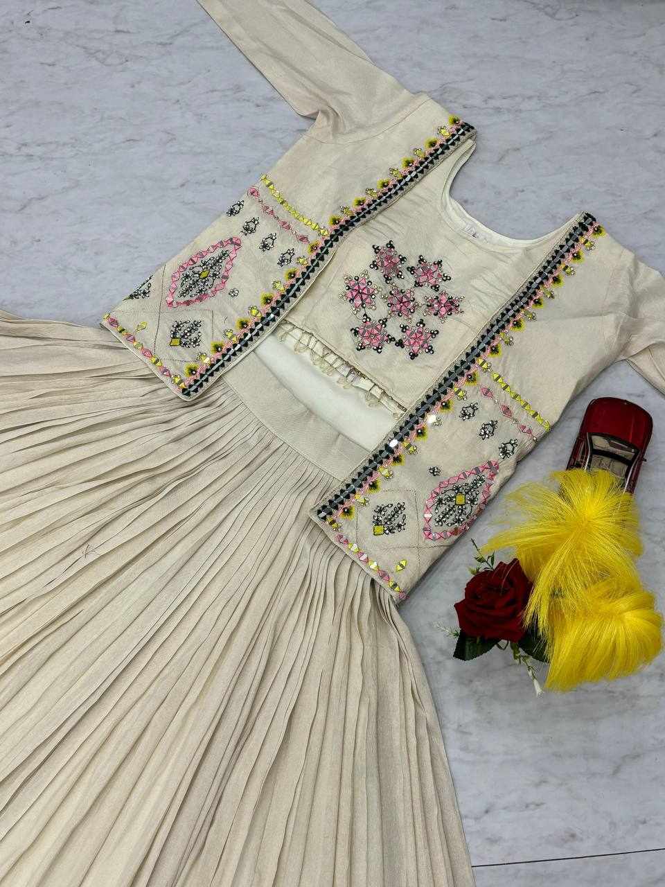 JKWH 999 Pure Fine Cotton Febric Embroidery Work A-line Kurti Set With Pocket