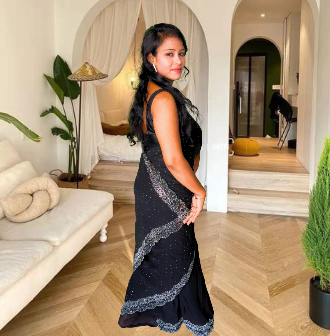 S4s Black Karishma Siroski Stones Lace Georgette Party Wear Saree